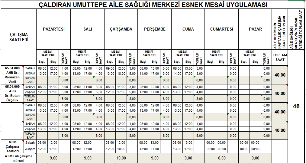 Çalışma Saatlerimiz